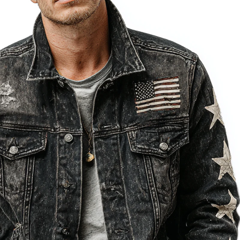 Karl | Men'S Washed Vintage Star Print Denim Jacket