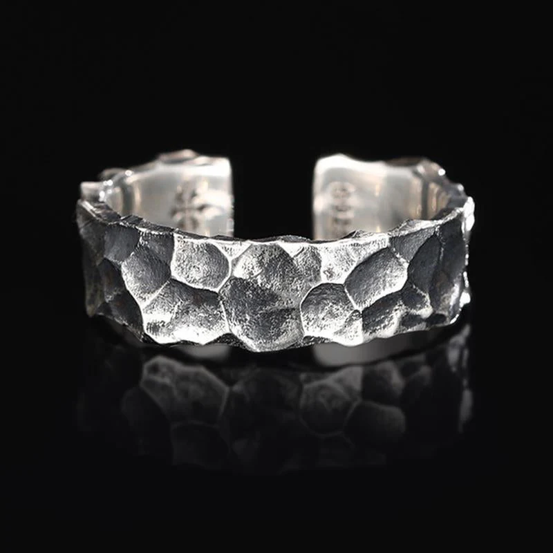 Men's Vine Hammer Pattern Distressed S Ring